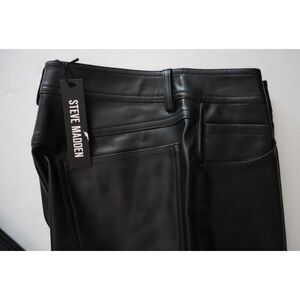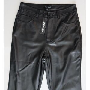 Steve Madden Women Sz 27 Black PU Leather Loren Mid-Rise Straight Leg Pants