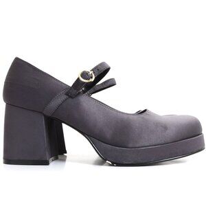 Steve Madden Women's 10 Dark Grey Satin Square Toe Mary Jane Platform Heels