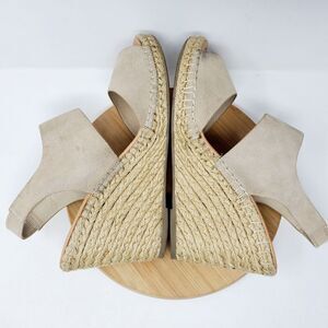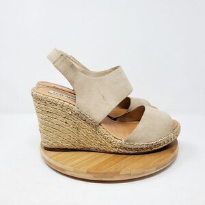Steve Madden Womens 11 Wedge Sandals Platform Beige Suede Strappy Shoes Resort