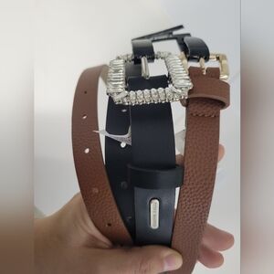 Steve Madden Womens 2 Pack Brown and Black Buckle Belts