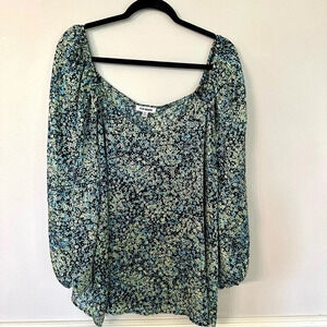Steve Madden Women’s 3/4 Sleeve Square Neck Black Multi Floral Top Size 2X NWT