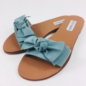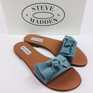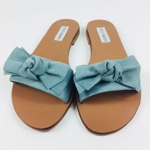 Cute bow sandals from steve madden. New in original box. M width, small bit of sticker residue on heel, easily removed.