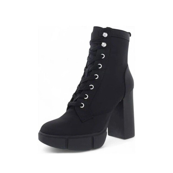 Steve Madden Womens 7.5 M Black Hani Lace Up High Heel Ankle Booties DISPLAY JE5