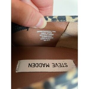 Steve Madden Womens 7.5 Safary Sneakers Leopard Print Slip on Shoes. These are preloved. Beautiful and comfortable shoes with thick sole for extra padding. Some normal wear to the bottom of the sole and the rim closest to the ground. Otherwise these shoes are in pretty stellar condition. The shoe's fabric is in really great shape. Perfect to wear everyday. Dress up or down!