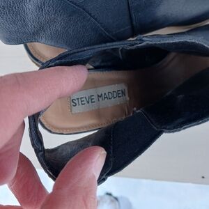 Steve Madden Sandals Womens 7.5M Nobel Block Heels Black Leather Open Toe Bootie
