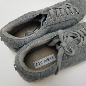 Steve Madden Womens 8 Bertie Platform Sneakers Felt Fabric Upper Laced Up Gray