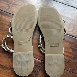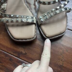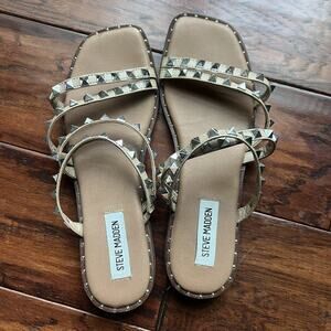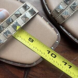 Steve Madden Women’s 8 Lodell Tan Strappy Slides with Silver Pyramid Studs Boho