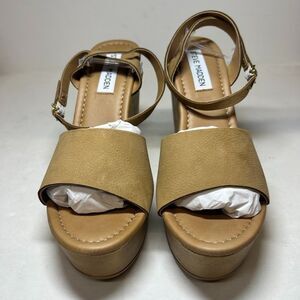 Steve Madden Womens 8.5 M Camel Nubuck Leather Welsh Wedge Heel Sandals NIB HQ1