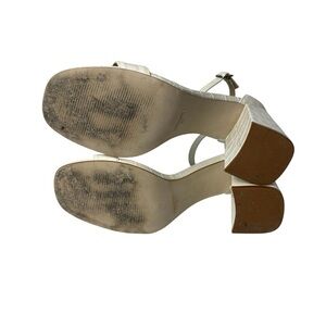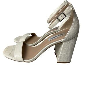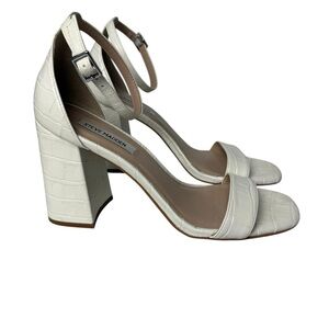 Steve Madden Womens 9 Dillion Ankle Strap Block Heel Sandal Cream Ivory Leather