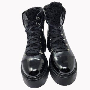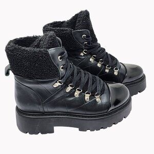 Steve Madden Womens 9M Reyen Combat Boots Black Faux Fur Lace Up Booties New