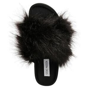 Steve Madden Women's Amari Faux Fur Slippers, Black Size 9M