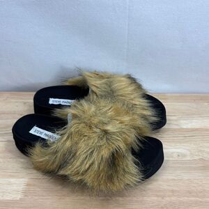 Steve Madden Women's Amari Faux Fur Slippers Tan Size 7- NIB