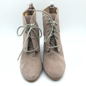 Steve Madden Womens Ankle Boots Wedge Heel Suede Lace Up Beige 9