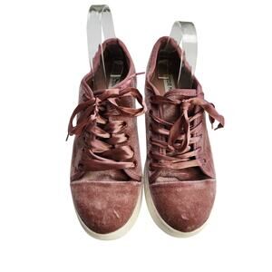 Steve Madden Womens Bagley Velvet Platform Sneakers Size 9 Rose Pink Satin Laces