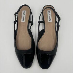 Steve Madden Women's Belinda-R Slingback Flats Black Cap Toe Size 9