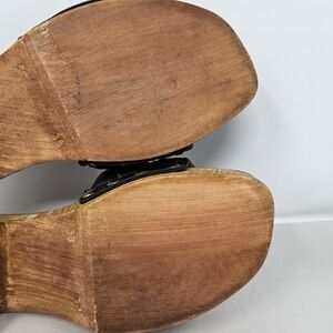 Steve Madden Womens Belong Slip On Thick Black Faux Leather Sandels Sz 39=8.5