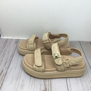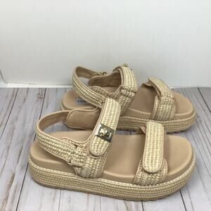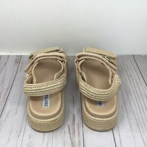 Steve Madden Womens Bigmona Raffia Platform Sandals Natural Tan Size 9.5