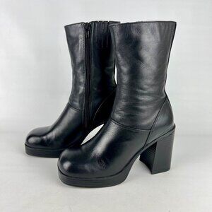 Steve Madden Womens Black Leather Chunky Boots Block Heel Square Toe size 7