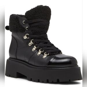 Steve Madden Women's Black Reyen Lace-Up Lug-Sole Quilted Leather Hiker Boot 8.5