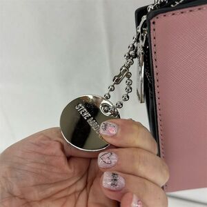 Keywords: Steve Madden, crossbody bag, blush pink, women's fashion, medium size, chain strap, secure closure, spacious interior, chic, stylish, versatile, pre-owned, rectangle shape, any occasion.
