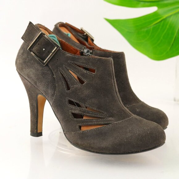 Steve Madden Womens Boot Size 7 Taupe Gray Suede Cutouts High Heel Bootie