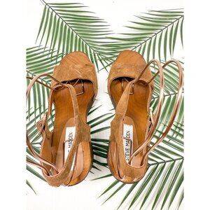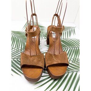 Steve Madden Women's Brown Buena—Bueno Wooden Strappy Block Heel Sandals Size 10