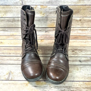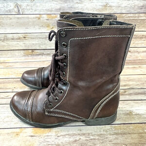 Steve Madden Womens Brown Leather Cap Toe Combat Troopa Boots 8.5M