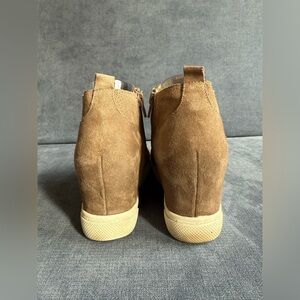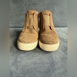 Steve Madden Womens Brown Suede Hidden Wedge Side Zip Sneakers SZ 9 Pull On