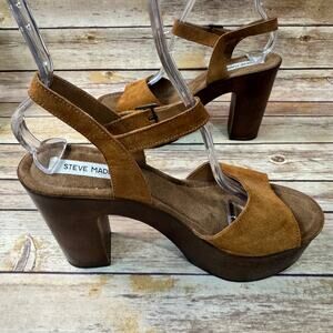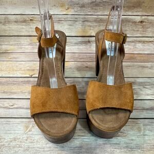 Steve Madden Womens Brown Suede Leather Lulla Open Toe Plat Form Sandals 11