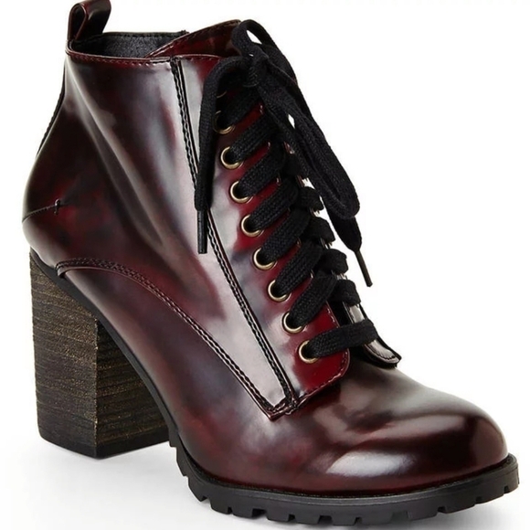 Steve Madden Womens Burgundy Andie Lace Up Y2K Chunky boots shoes sz 8