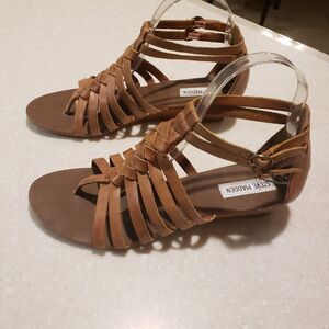 Steve Madden Women's Chainge Natural Leather Strappy Gladiator Sandals Sz 9