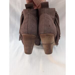 Steve Madden Womens Cian Ankle Bootie Sz 8 Taupe Suede Fringe Block Heel Western