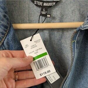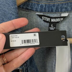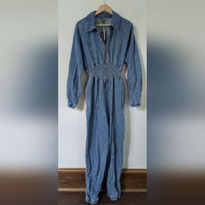 Steve Madden Women's Coya Smock-Waist Denim Long Sleeve Jumpsuit L Large