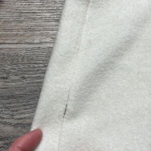 Steve Madden Women’s Cream Wool Blend Pear Coat, size large. In good used condition. There is some pilling and some imperfections shown in pictures. The material is fairly worn in spots but it still looks nice, if you spent some time cleaning it up it’d look really nice. See pictures for fabric content and measurements.