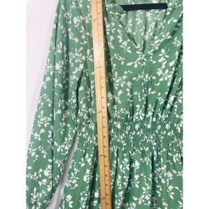 Steve Madden Womens Dress Green White Floral Long Sleeve Smocked Mini M