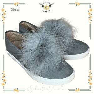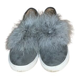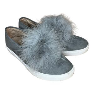Steve Madden Womens Emily Grey Feathers Round Toe Slip On Shoes Size 9 B