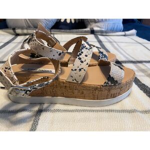 Steve Madden Women's Faithi Wedge Sandal Size 8M Snakeskin Print Silver Buckle