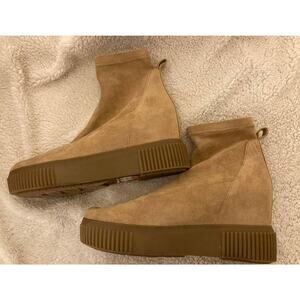 Steve Madden Women's Freshly Suede Wedge Sneaker Ankle Boots Size 9M Tan NWT