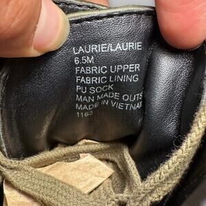 Laurie Women’s Green Satin Lace-Up Block Heel Boots with Embroidered Patch - Size 6.5M