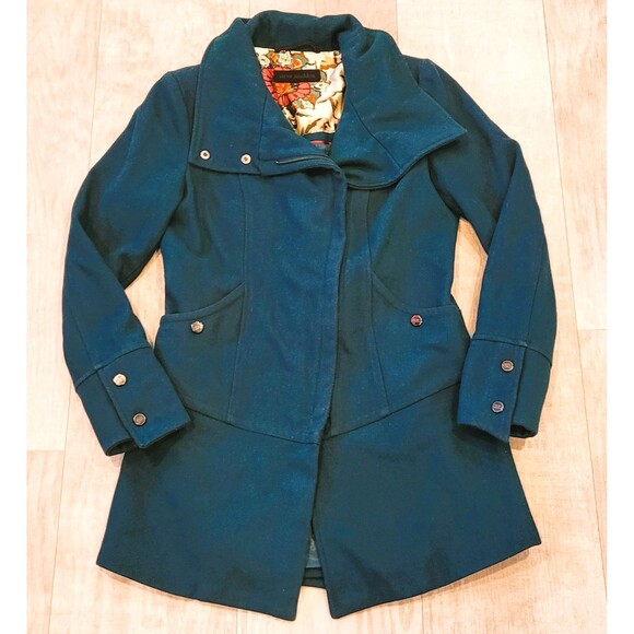 Steve Madden Womens Green Zip Wool Blend Coat Size M Peacoat Snap Pockets Warm