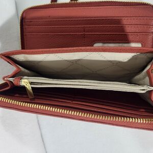 Steve Madden Women’s Hunter Zip Around Wristlet Wallet Cognac Faux Leather