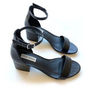 Steve Madden Womens Irenee Black Sandals Size 8.5 Block Heel 2.5" Ankle Strap