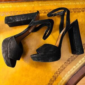 Steve Madden Womens Kierra Platform Black 70s Swagger Suede Sandals Size 8.5