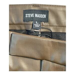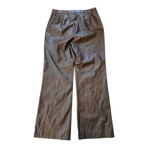 Steve Madden Women's Large Wide Leg Pant Brown Casual Mid-Rise Faux Leather NWOT