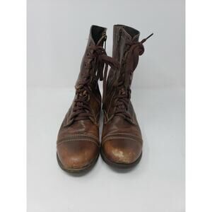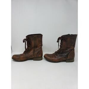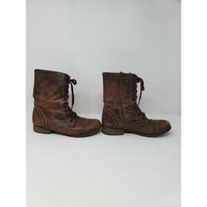 Steve Madden Womens Leather Round Toe Lace & Zip Mid-Calf, Brown Leather, Size 7