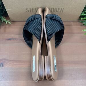 Steve Madden Women's Limitt Textured Black Slide Sandals Size 10