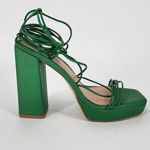 Steve Madden Manzie Green Ankle-Tie Platform Sandals