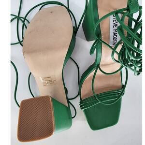 Steve Madden Women's Manzie Green Ankle-Tie Platform Sandals Size 11M