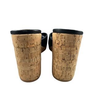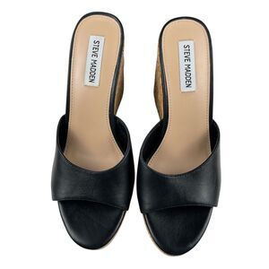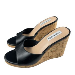 Steve Madden Women's Marvelous Cork Wedge Sandals Size 10M Black Leather Slip-On