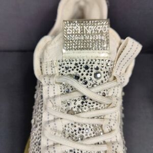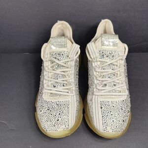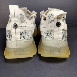 Steve Madden Women's Maxima Rhinestone Sneakes Off White Platform Shoes Size 9.5